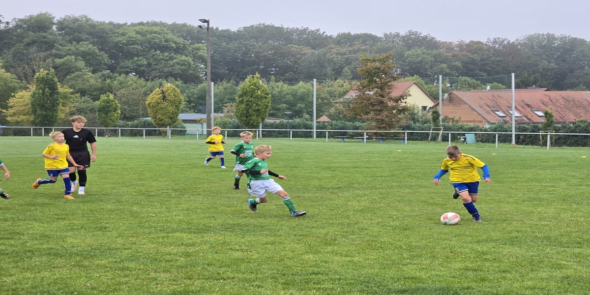 Erneut konnte die E1 (gelbe Trikots) 3 Punkte beim 9:3-Sieg sichern!