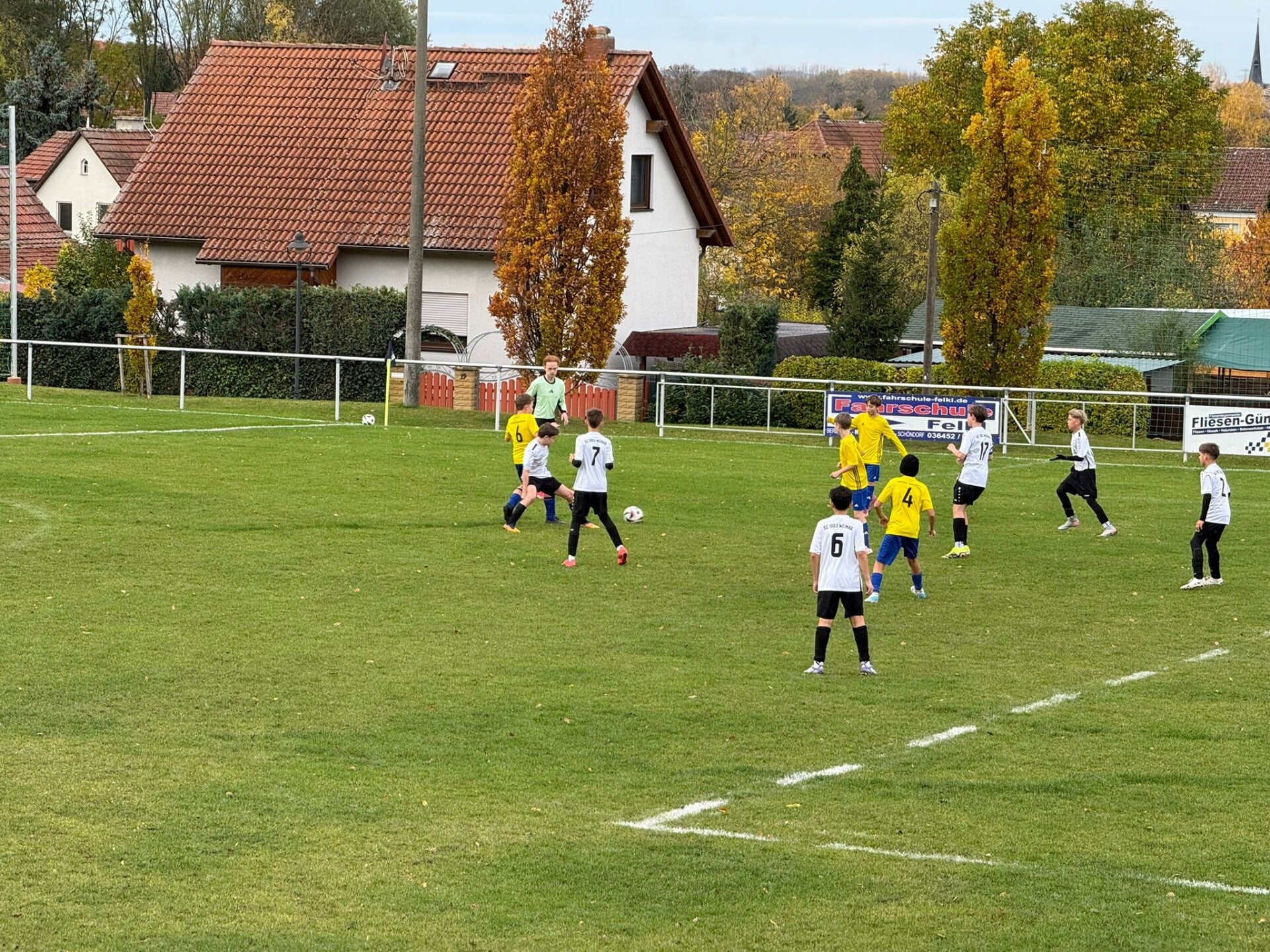 Nach dem Seitenwechsel blieb das Bild zunächst unverändert: Unsere SG hatte das Spiel weitgehend im Griff und erspielte sich weitere gute Gelegenheiten, verpasste es aber, den entscheidenden Treffer zum 2:0 nachzulegen. So kam es, wie es im Fußball oft kommt – der Gegner nutzte seine Chance. Nach einer starken Einzelaktion setzte sich der Weimarer Stürmer am Strafraumeck durch, ging an der Grundlinie entlang und schloss zum 1:1 ab.