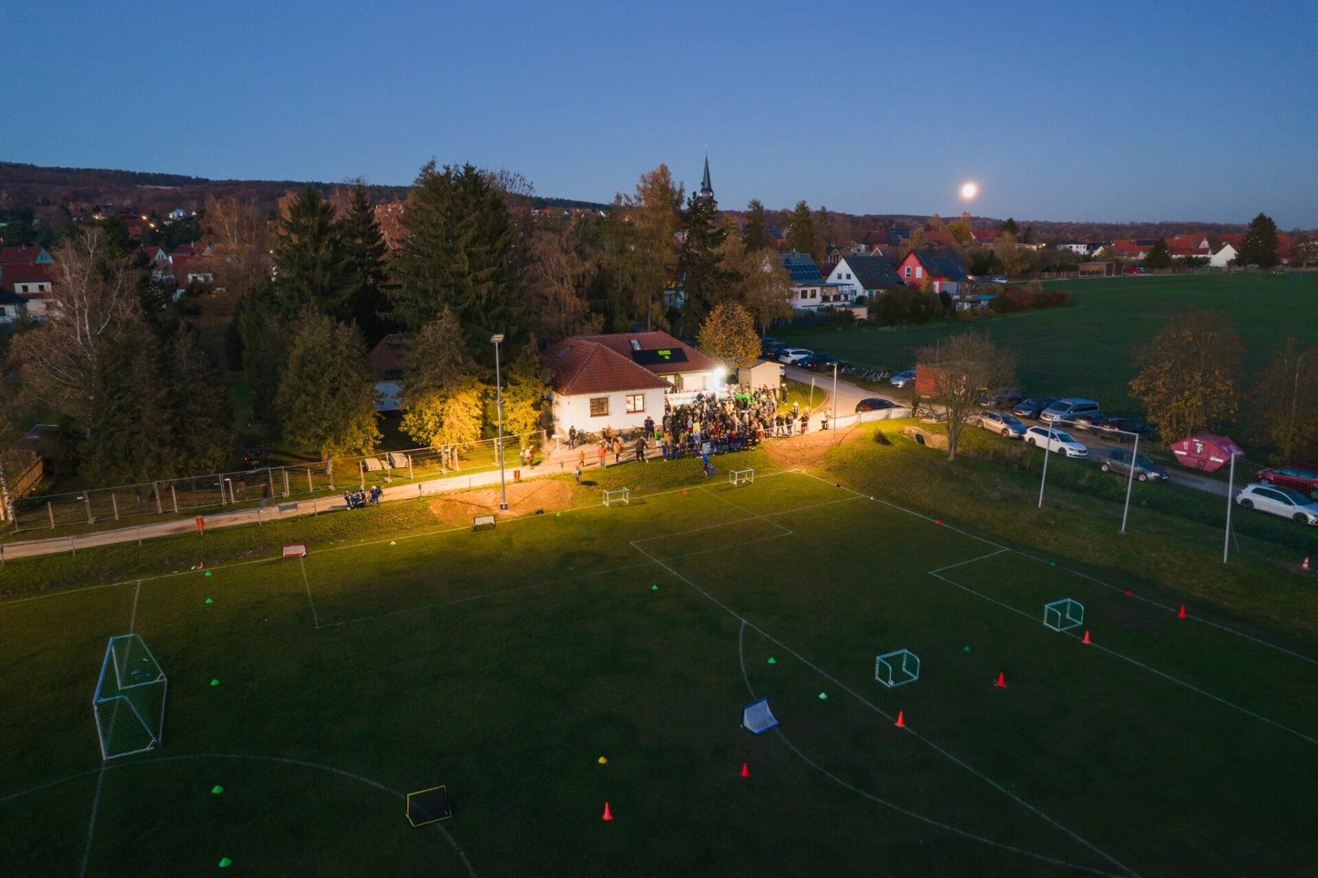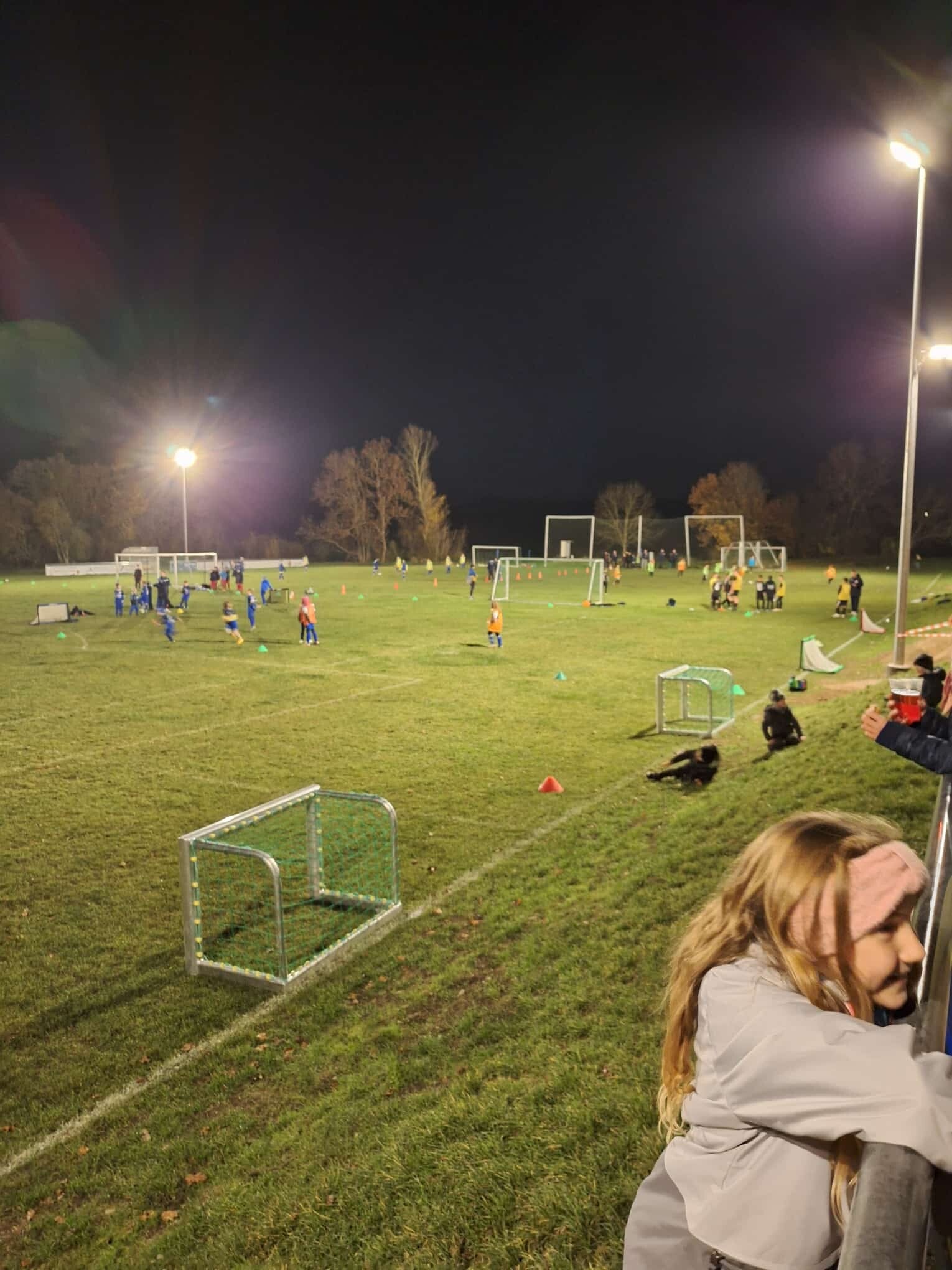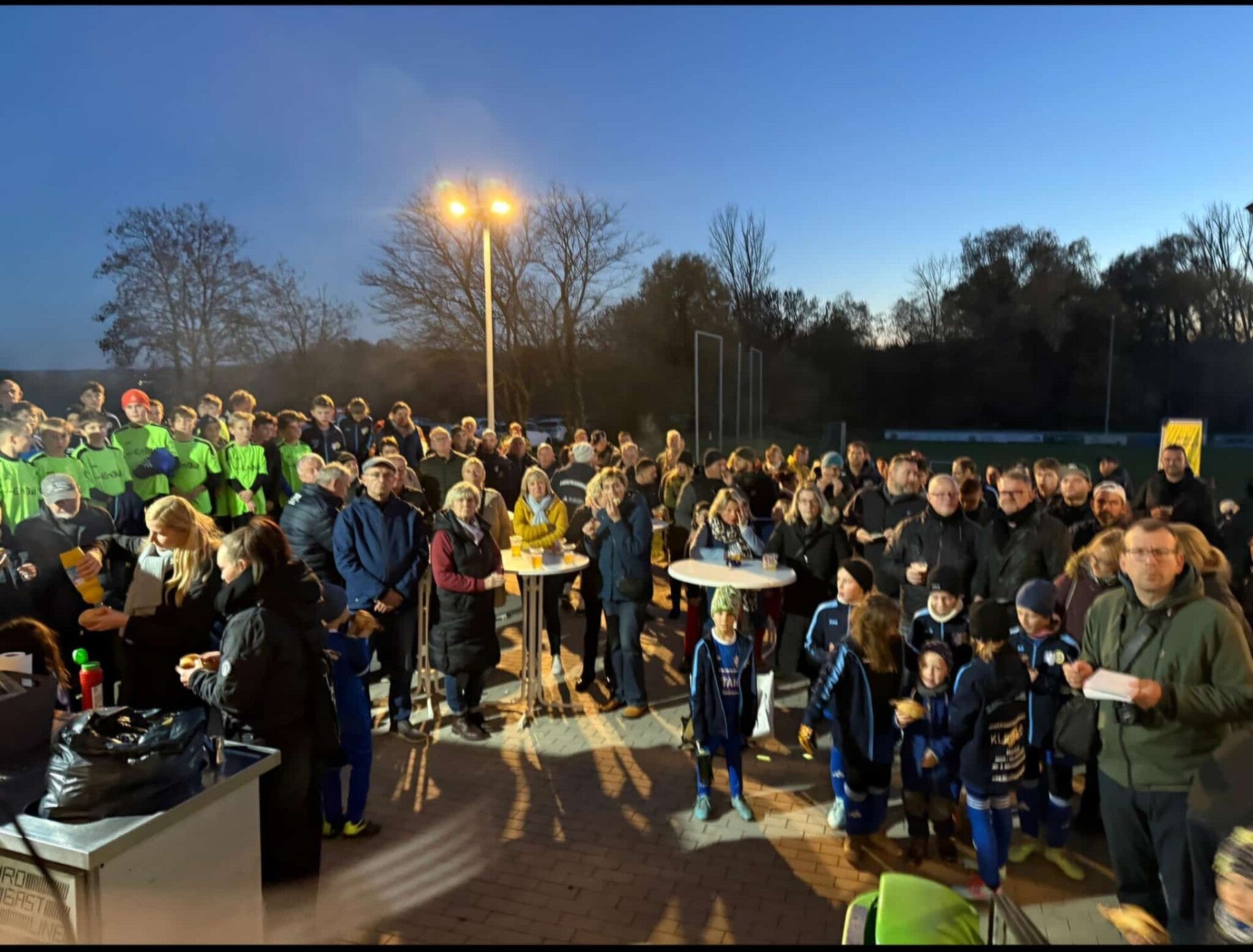 Ein besonderes Highlight war der feierliche Moment der Inbetriebnahme: Lea und Gustav, zwei junge Vereinsmitglieder, durften per Buzzer das neue Flutlicht einschalten – begleitet von großem Applaus und Jubel der Anwesenden. Unter dem hellen Schein der neuen Anlage fanden anschließend Spiele aller Jugendteams gleichzeitig auf dem Platz statt – ein beeindruckendes Bild und Symbol für den Zusammenhalt im Verein. Den sportlichen Abschluss bildete das Training der Herrenmannschaft, die die neue Beleuchtung ebenfalls direkt testen konnte.