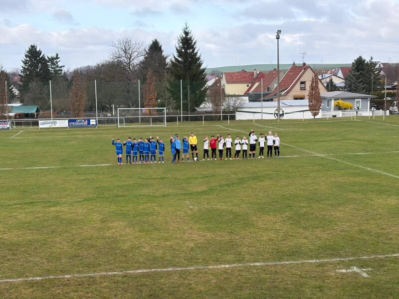 In der Anfangsphase war ein ausgeglichenes Spiel zu sehen, in dem beide Mannschaften ihre Anteile hatten. Der erste Fehler in der Hintermannschaft des Gastes konnte sofort genutzt werden; auf Zuspiel von Nils und Vorlage durch Hannes schob Gustav sicher zum 1:0 ein. Die Führung gab unserer Mannschaft zunächst Sicherheit, doch der erste eigene Abwehrfehler führte wenig später zum 1:1. Ab diesem Zeitpunkt übernahm der SV Pfiffelbach die Spielkontrolle. Mit etwas Glück und Geschick konnte das Unentschieden in die Halbzeit gerettet werden.